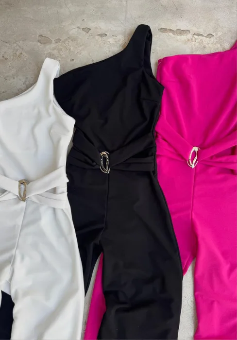 Mono largo de un solo hombro con accesorio.