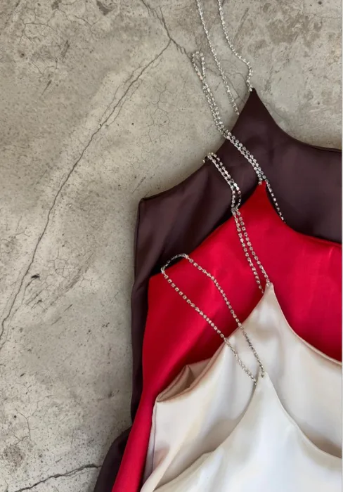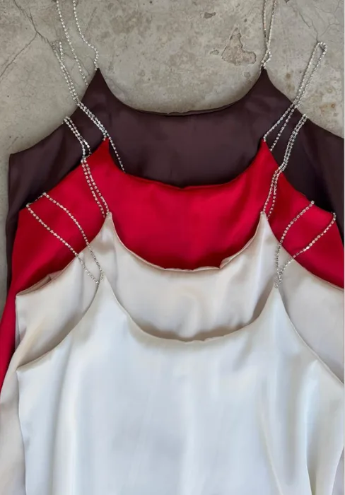 Musculosa corte amplio con breteles strass.