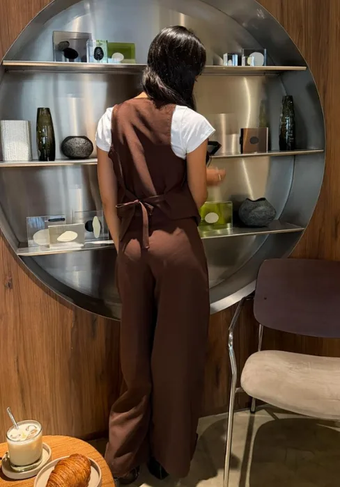 Pantalón con las pinzas cocidas y corte amplio.
