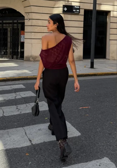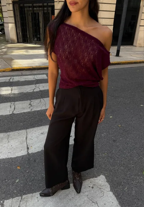 Remera con un hombro caído.