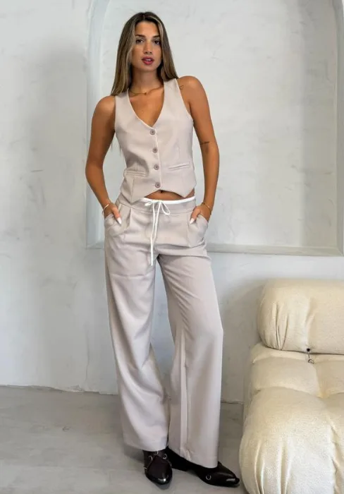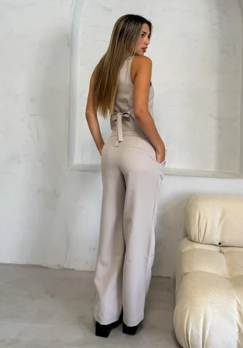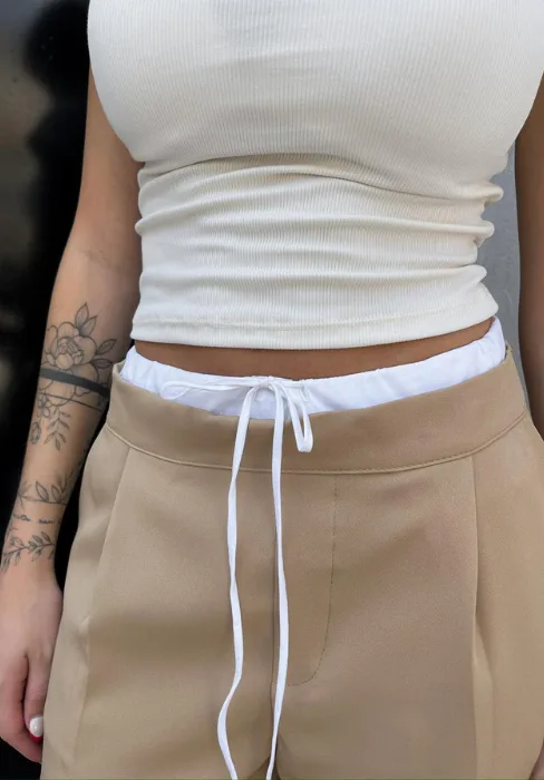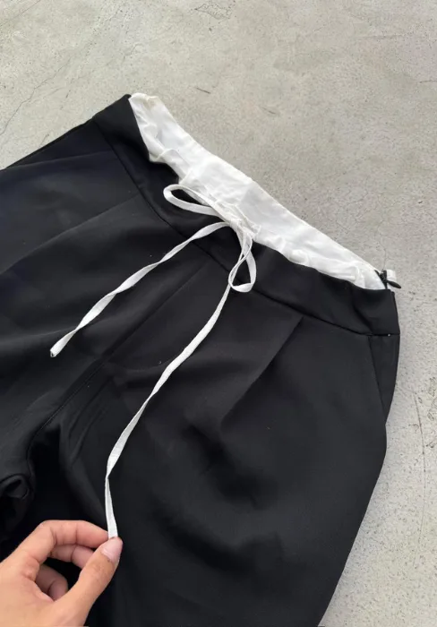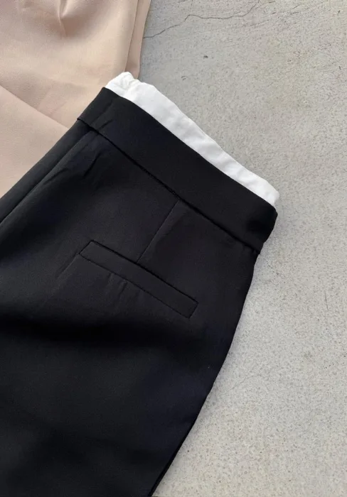 Sastrero con detalle de cintura estilo bóxer, pinzas y bolsillos.