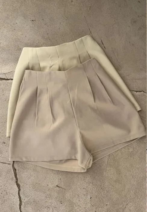 Short con pinzas bolsillos y elástico en la parte de atrás.