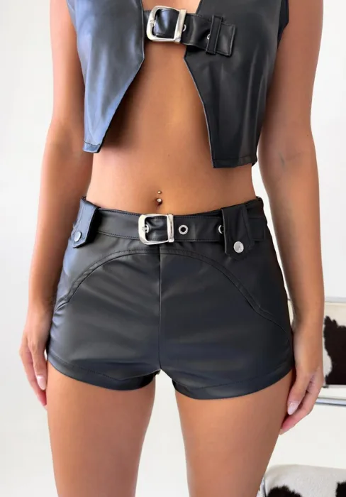 Short combinado con recorte y accesorio cinto.