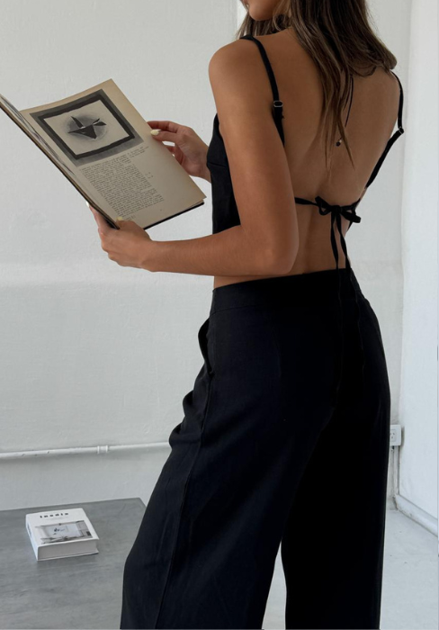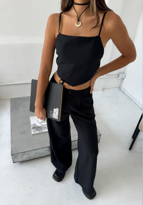Top terminación pico y para atar en la espalda Tela: Lino sastrero.