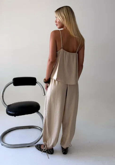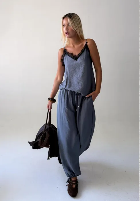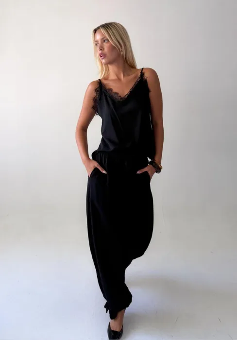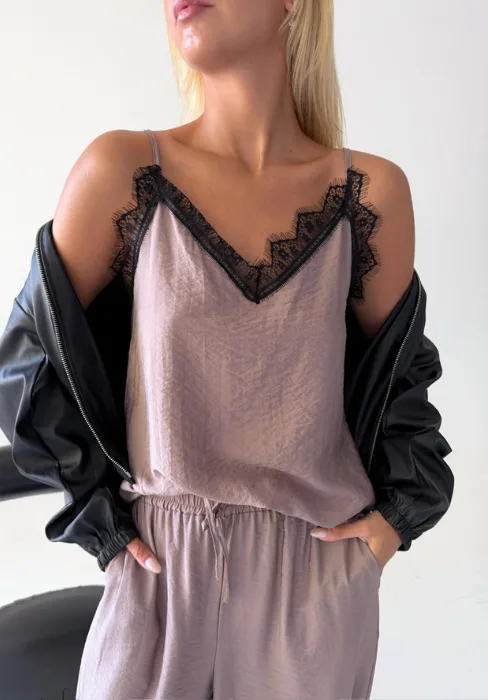 Musculosa con breteles regulables y encaje.