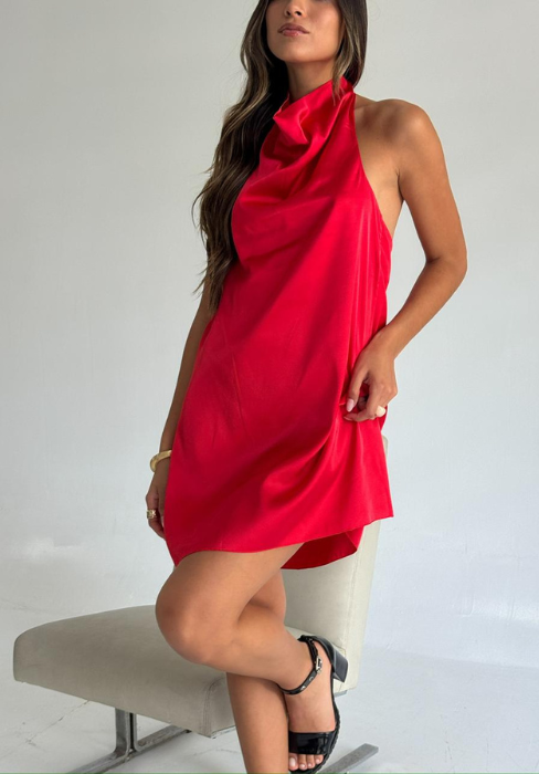 Vestido con escote cerrado y espalda abierta
